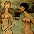 Художник КРОПИВНИЦКИЙ ЕВГЕНИЙ ЛЕОНИДОВИЧ,"Девушки у воды", 1957 г., картон, м.,48х63,8см. Собрание Л.Кропивницкого. р.50х36с.