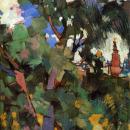 "Пейзаж",1918,холст, масло. 81х94 Пост. в 1919 из Музейного бюро отдела ИЗО Наркомпроса РСФСР. Карт. гал. им. Б.М. Кустодиева