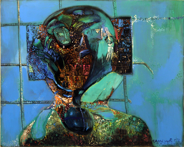 Картины Саши Семёнова – это Книга Бытия и наша жизнь, присутствие Творца в нас и вокруг нас, Разум Всеобщий и частный, чувства каждого внешние и внутренние– все это отдельно и вместе - ткань нашего мира и нашего сознания, смыкающиеся на его холстах независимо от нас самих. Мистическое измерение картин художника создается непохожестью предметов на самих себя: где лицо не лицо, где на ноге может быть четыре пальца, где все возможно, где можно ничему не удивляться, где все миф, но вместе с тем это наш мир – мир, где не перестаешь удивляться всему. В своих картинах художник выражает мысли и переживания языком поэтичных форм, в которых и метафора, и гипербола, и олицетворение душевных качеств и свойств человеческих в образах и красках, в пространственных решениях являют скрытое свойство нашего бытия как миф о современном человеке и его мире.