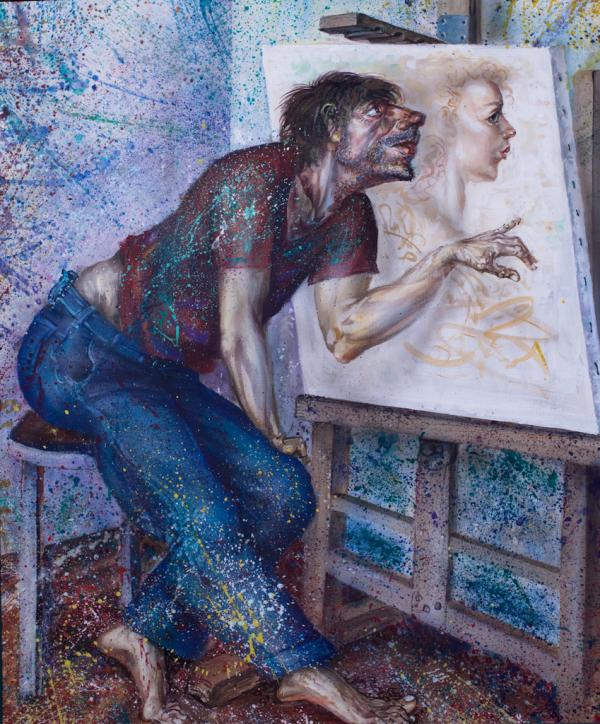 Творческая Вселенная Иванюка – это и соблазнительные фемины, и алчные похотливые старики, и козлы с удивительно проницательными, мудрыми глазами, и портреты «камней», болтающихся в пустоте, и извращение взгляда, и те непонятные вибрации и прорехи, которые возникают между фигурами, и без этих зияний нет искусства. В некоторых его новых работах, написанных за последние два года, имеются даже сюжетные повороты. В каком-то смысле, это литература без слов. В современной литературе не очень принято злоупотреблять описаниями природы. Игорь Иванюк тоже не злоупотребляет. От написания пейзажей он отказался, уступив дорогу фотографам. И сосредоточился на том, что сфотографировать пока еще невозможно. В его картинах то и дело появляются домовые, призраки… Огородное пугало, оно же – чучело, вдруг взлетает к облакам, а человек опускается на дно. На картинах Игоря Иванюка смешанная не только живописная техника, но и темы, эпохи. Он их смешивает только ему известным способом. Так или иначе, художника интересует все, на что падает взгляд. Но этим он не ограничивается и старается запечатлеть то, что невидимо. Художник впускает в свои работы тех, кто чаще всего остается вне поля зрения. Игорь Иванюк один из немногих наших художников, кто способен удивить. С помощью зеркальных приемов и изощренных искажений он удаляется в сторону или в прошлое, в былинные и мифические времена. Но вскоре снова возвращается, чтобы еще кого-нибудь сбить с толку.