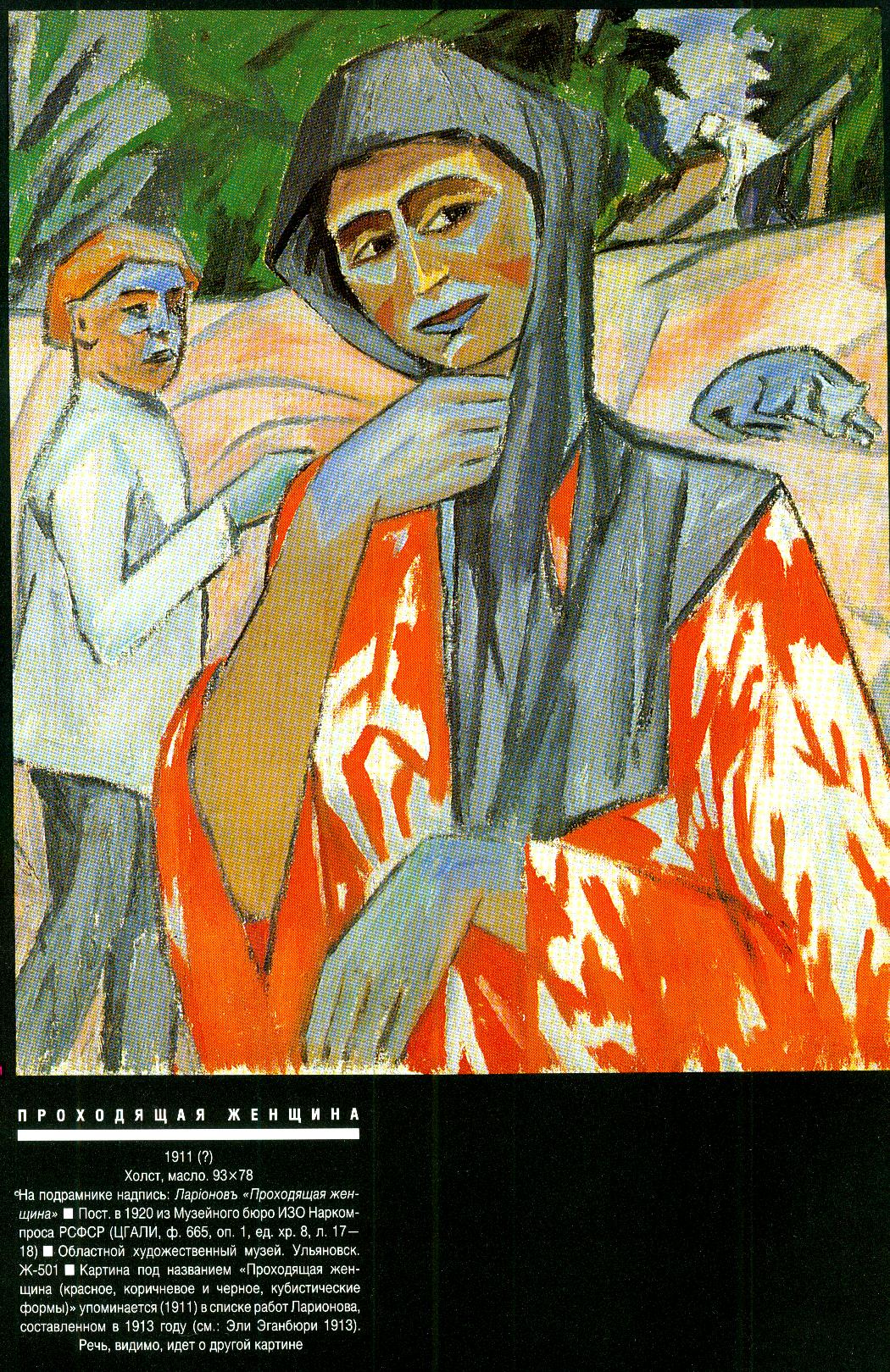событиями период творческой жизни художника. В 1910 он попадает в число организаторов общества «Бубновый влет», но вскоре разногласия с ведущими группы заставляют М.Ф. Ларионова вместе со своими единомышленниками отделиться от «сезаннистов». В 1912 М.Ф. Ларионов организует в Москве выставку «Ослиный хвост». На следующий устроенной им выставке – «Мишень» (Москва, 1913) – были впервые показаны беспредметные картины в стиле лучизма – созданного Н.С. Гончаровой и М.Ф. Ларионовым нового живописного направления. Был издан манифест «Лучисты и будущники» (подписанный десятью художниками, в том числе Н.С. Гончаровой). В том же выставочном здании проходила «Выставка иконописных подлинников и лубков, организованная Ларионовым». В тот же период иллюстрирует футуристические книги, главным образом В.В. Хлебникова и А.Е. Крученых («Мирсконца», «Старинная любовь», «Помада» и другие). В 1914 в Москве открывается выставка «№ 4» (то есть четвертая организованная М.Ф. Ларионовым выставка). Едет вместе с С.П. Дягилевым в Париж, экспонирует свои произведения на совместной с Н.С. Гончаровой выставке в галерее Поля Гийома (предисловие к каталогу написал Гийом Аполлинер). ■ До начала первой мировой войны М.Ф. Ларионов вернулся в Россию, вскоре был мобилизован, служил прапорщиком, перенес контузию и в 1915 был демобилизовался. ■ Вскоре принимает предложение С.П. Дягилева работать в его антрепризе и уезжает вместе с Н.С. Гончаровой в Лозанну. Оформляет ряд спектаклей, в том числе «Русские сказки» А.К. Лядова (1917), «Шута» С.С. Прокофьева (1921), «Лисицу» И.Ф. Стравинского (1922). В1917 Н.С. Гончарова и М.Ф. Ларионов окончательно поселяются в Париже. ■ Участник выставок с 1906: Мир искусства. Петербург, 1906,1912; Москва, 1911-1913; Киев, 1913; Союз русских художников. Петербург, 1906-1907; МТХ. Москва, 1907; Салоны В. Издебского. Одесса, 1909-1910; Союз молодежи. Петербург, Рига, 1910; Петербург 1911/1912; Московский салон. Москва, 1911; однодневная персональная. Москва, 1911; Современная живопись. Екатеринбург, 1912; Синий всадник. Мюнхен, 1912; первый немецкий осенний салон. Берлин, 1913; Выставка живописи. 1915 год. Москва, 1915; выставка новых поступлений в Третьяковскую галерею за 1918. Москва, 1919; 1-я Государственная выставка искусства и науки. Казань, 1920; XII Международная выставка искусств. Венеция, 1920; совместная с Н.С. Гончаровой. Нью-Йорк, 1922; Выставка новых течений в искусстве. Ленинград, 1927; ретроспективная (совместно с Н.С. Гончаровой). Лондон, 1961; Париж, 1963 и другие.