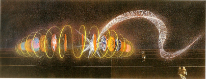 Художник НУСБЕРГ ЛЕВ ВАЛЬДЕМАРОВИЧ,картина "Спираль". Эскиз проекта 1963г.(совместно с Г.Битт), 1966г., бум.,темпера,19,5х48,5.