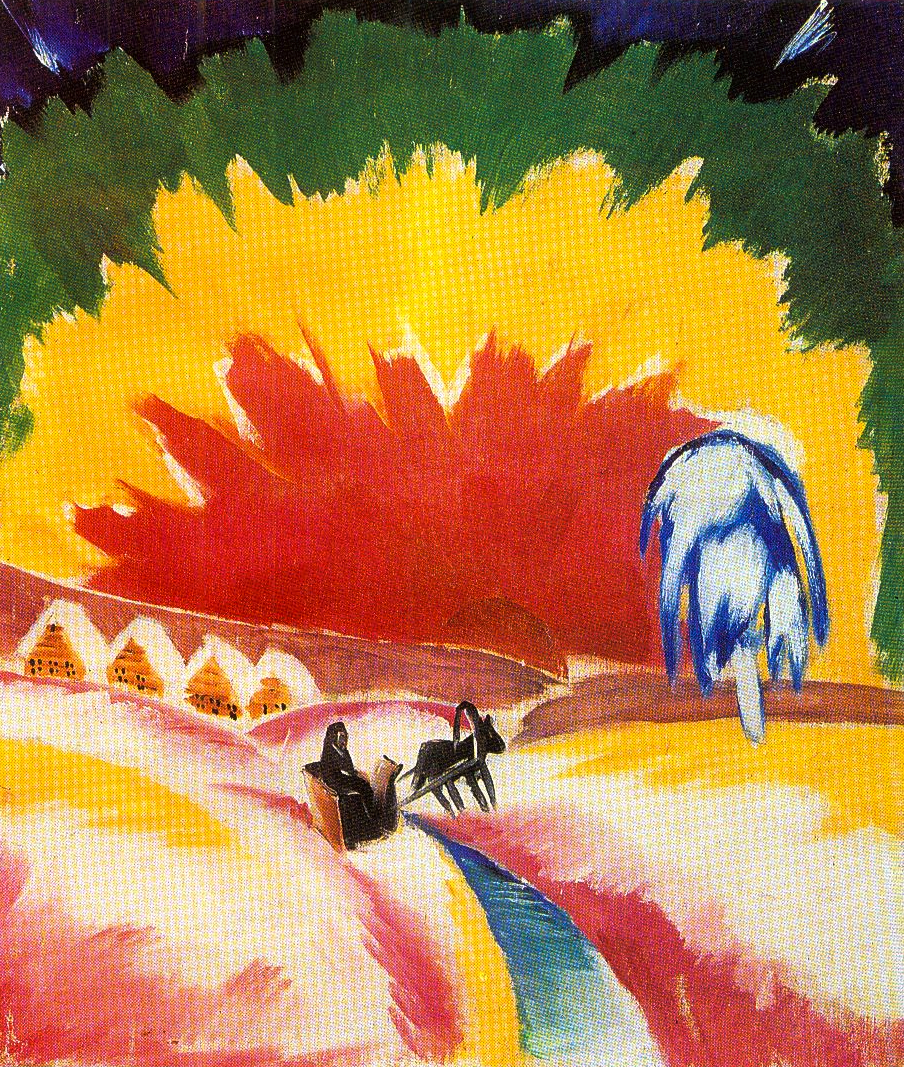 Во второй полвоине 1910-х находился под влиянием живописи М.Ф.Ларионова и Н.С.Гончаровой.
