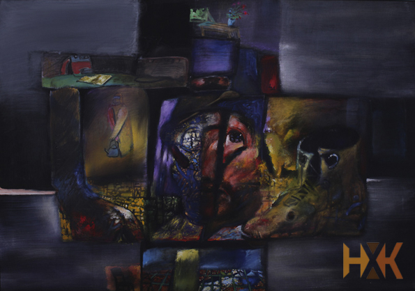 Художник САША СЕМЁНОВ, картина "Портрет пейзаж" оргалит, акрил, 100х123см, 2003 г.